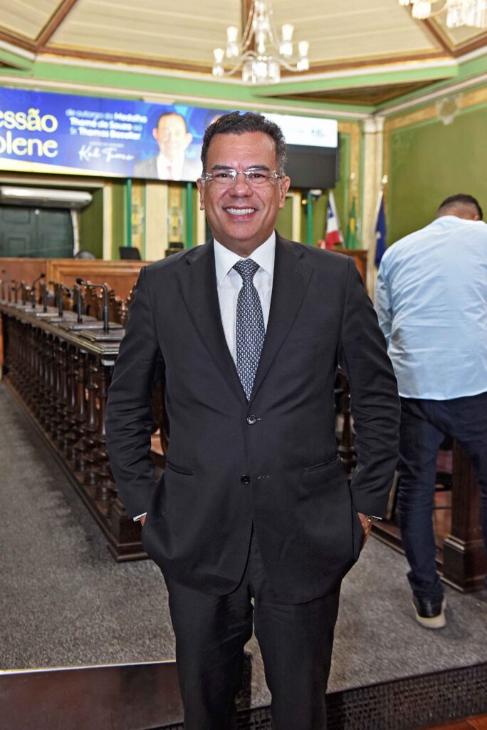 A Câmara Municipal de Salvador foi palco de uma sessão solene concorrida na noite da última quarta-feira (15), reunindo autoridades, juristas e convidados para a entrega da Medalha Thomé de Souza ao advogado Thomas Bacellar.