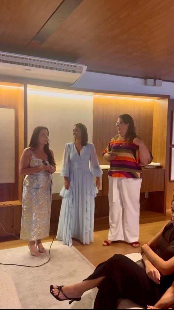 Outro destaque foi o desfile com arquitetas convidadas, que apresentaram looks da marca Alanes. A experiência foi completada com música, buffet e momentos de conexão, reforçando o posicionamento da marca no segmento.