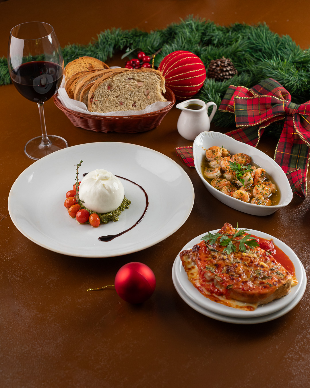 O cardápio reúne receitas que marcaram a história da casa, fundada por Dona Liana, além de entradas ideais para compartilhar. Entre as opções estão Bruschetta de tomate, queijo e manjericão gratinado no pão artesanal com bacon, Burrata com tomates confitados e pesto, acompanhada de pão artesanal com bacon e Camarão ao alho e óleo picante, servido com pão artesanal da casa.