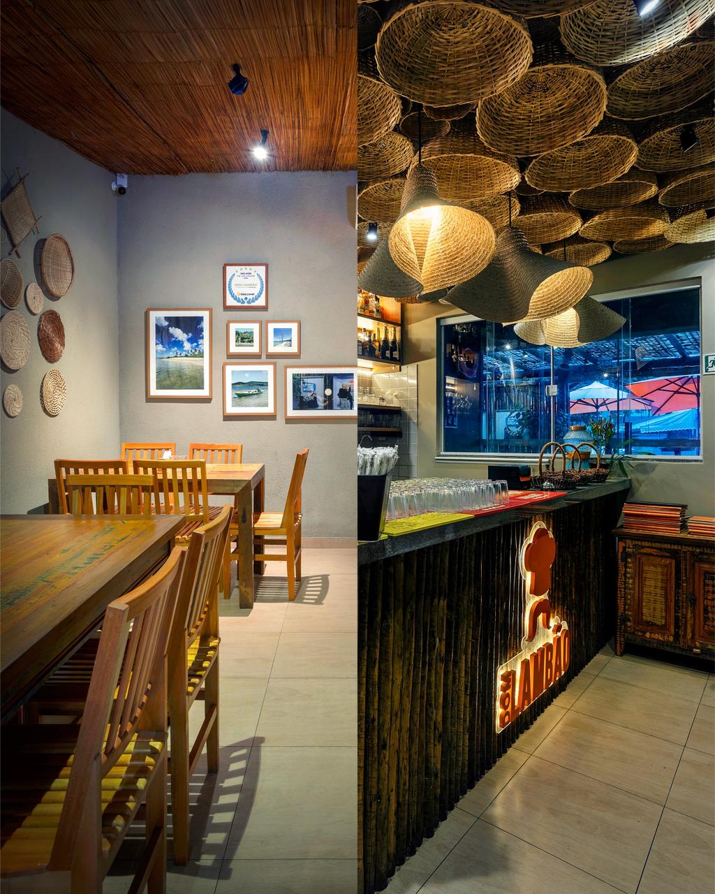 Para reiterar a identidade marinha do restaurante, conhecido pelo caranguejo, lambreta e frutos do mar, a ilha de Cações, terra natal da mãe de Adricia, aparece em conchas e outros itens que adornam os espaços do local.