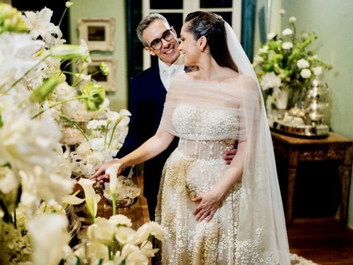 O olhar apurado da empresária Juliana Guimarães para a Cymbeline se materializou em um vestido que traduziu com precisão o encontro entre tradição, sofisticação e identidade. Para o casamento de Fernanda Gordilho com Marco Bottino, celebrado no Solar Barão do Rio Real – casarão histórico da família e palco de forte valor afetivo – a escolha foi um modelo da Coleção Pronovias Privée, apresentado em Salvador pela Unreve Cymbeline.