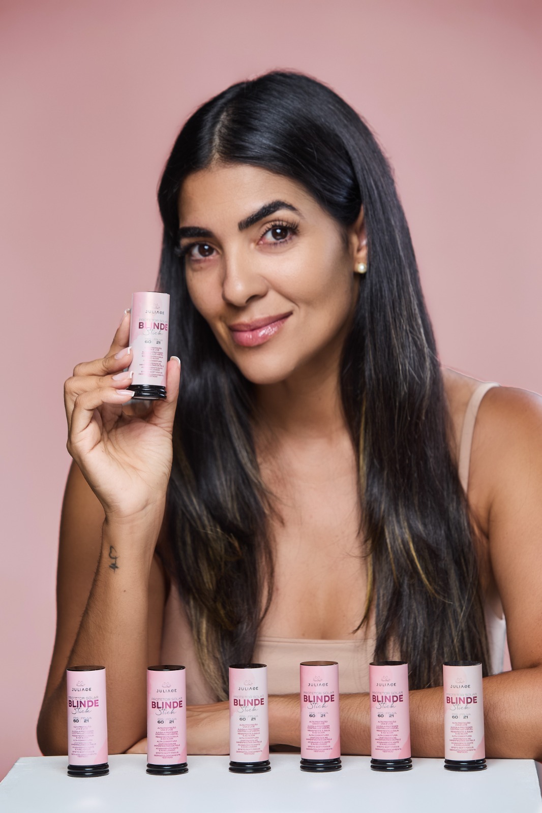 O Blind Stick se destaca como um produto multifuncional, reunindo alta proteção UVA e UVB, proteção contra luz visível, alta cobertura, acabamento mate e resistência à água e ao suor. Além de uniformizar imperfeições, manchas e olheiras, o produto também atua no cuidado da pele, com colágeno vegano e vitamina E, ajudando na prevenção de linhas finas e rugas. “É um produto de blindagem mesmo. A pessoa pode suar, molhar, viver o Carnaval, que a pele segue protegida”, explica Juliana.
