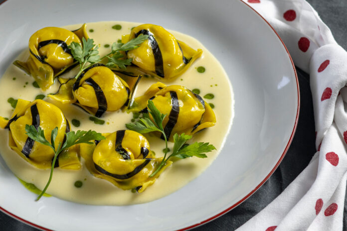 • Torteli bicolor de camarão e siri ao molho cítrico – R$ 219,00