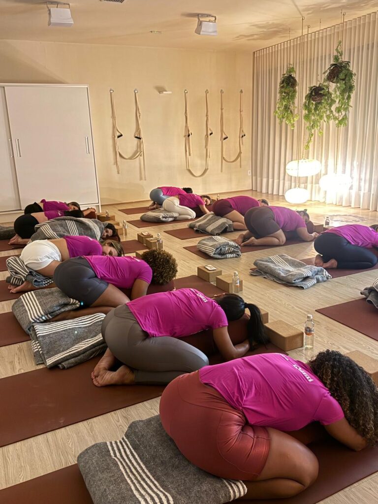 Com vagas esgotadas, a experiência teve início com uma aula de Yoga Restaurativa, marcada por práticas de respiração consciente, seguida de um brunch saudável assinado pela Healthy por Victoria Cintra. A proposta intimista reforçou o conceito do projeto de criar espaços de pausa em meio à rotina intensa das participantes.