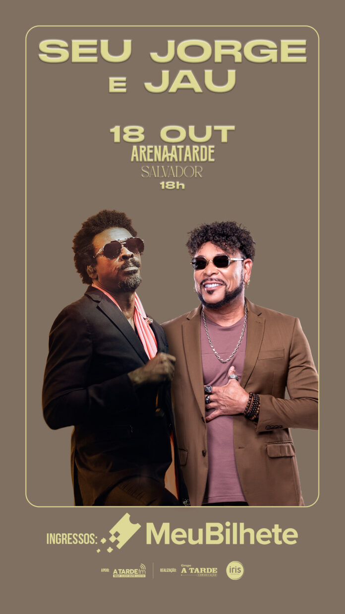 Um dos maiores nomes da música brasileira, Seu Jorge retorna a Salvador no dia 18 de outubro (sábado) para apresentar o projeto Baile à la Baiana, criado em parceria com os músicos baianos Peu Meurray e Magary Lord, na recém-inaugurada Arena A TARDE. E, na mesma noite, o cantor Jau leva ao palco o seu consagrado projeto Wine Lovers, que conquistou o público baiano ao unir música e vinho em uma experiência elegante e diferenciada. Será uma noite dupla de encontros, dança, brasilidade e celebração em um dos espaços de destaque da nova cena cultural da cidade.
