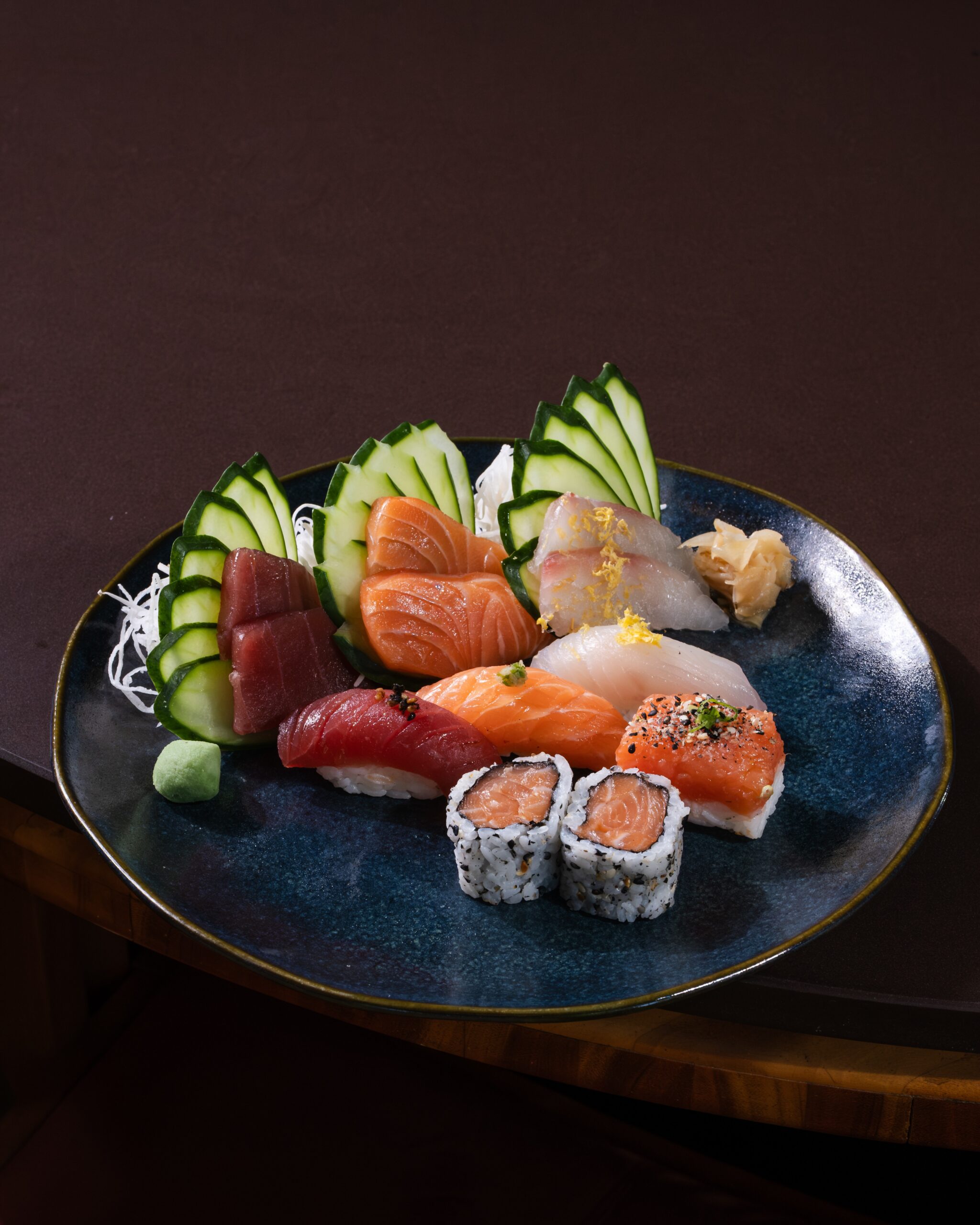 Após a entrada, os pratos do almoço também surpreendem pela variedade. Há 14 opções para o cliente selecionar: Combinado Sushi & Sashimi | 12 peças; Combinado Sushi & Sashimi Salmão | 12 peças; Combinado Sushi & Sashimi Maçaricado | 12 peças; Sushi Set | 12 peças; Sashimi Set | 9 peças; Sashimi Set | 9 peças; Bibimbap Filé; Bibimbap Vegetariano; Yakissoba de Filé & Frango; Noodles de Camarão e Fios de Legumes; Filé, Frango, Peixe ou Filé com Shimeji (estes quatro últimos levam dois acompanhamentos cada um).