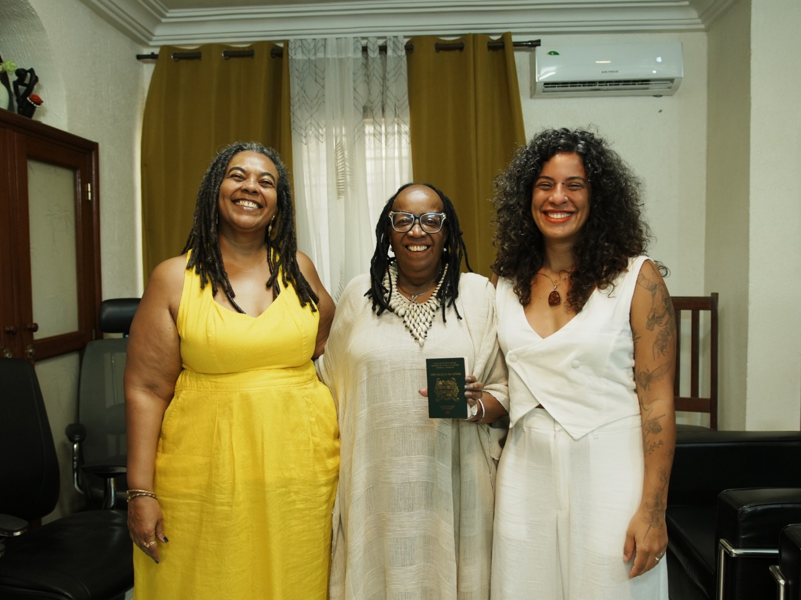 O retorno da equipe de filmagem ao Benim foi acompanhado por uma comitiva para conclusão das gravações do documentário “Mulheres Negras em Rotas de Liberdade” e registro da cerimônia de entrega do passaporte. A comitiva contou com a presença de Tricia Calmon, superintendente de Apoio e Defesa aos Direitos Humanos do governo da Bahia; Christiane Gomes, coordenadora de projetos na Fundação Rosa Luxemburgo; Eliane Dias, advogada e empresária; Natália Carneiro, jornalista e coordenadora de Comunicação do Portal Geledés, além da escritora Conceição Evaristo e da ativista e advogada Mirtes Renata, que também são personagens do documentário.