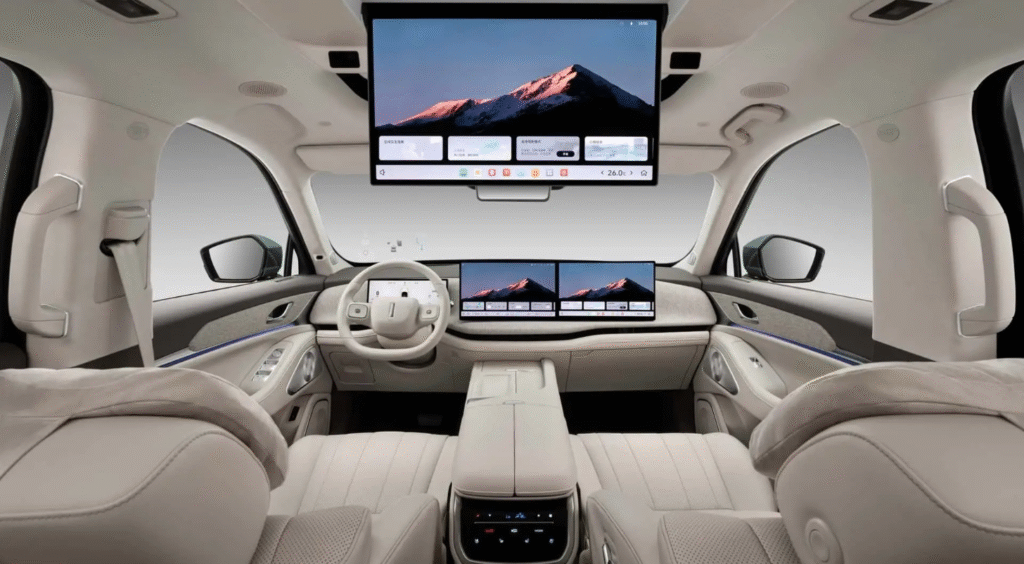 O veículo também conta com acesso remoto completo pelo aplicativo My GWM, permitindo ao usuário controlar funções como climatização, travamento e status da bateria diretamente pelo smartphone. Internamente, o modelo de seis lugares tem design minimalista, com materiais nobres e acabamento refinado, possibilitando total acessibilidade e conforto extremo na condução.